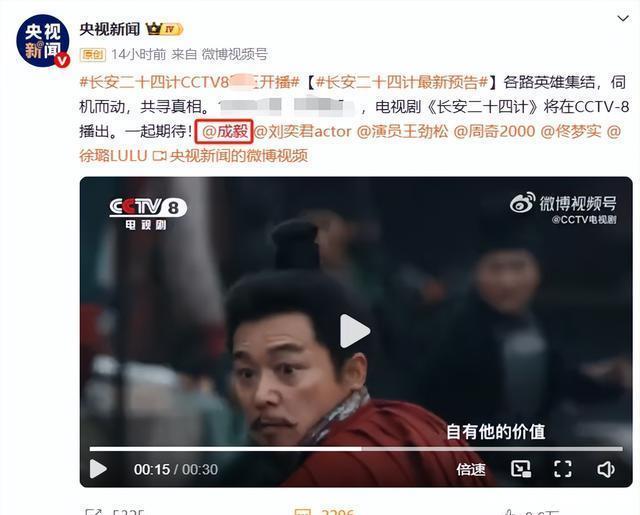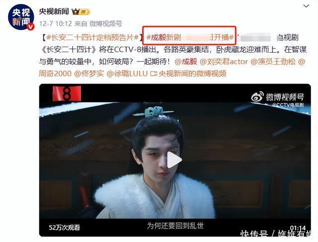 01、央视点名 12月7日,央视新闻发文: “长安二十四计定档预告片,成毅新剧开播。” 次日,央视新闻再次发文强调: “长安二十四计CCTV8开播。”
